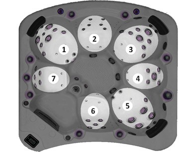 Le vulcano est un jet extrêmement puissant permettant de masser la zone de son choix, comme les cuisses, les lombaires, la ceinture abdominale ou les pieds. Grâce à une vanne déviatrice, vous pouvez contrôler la puissance du jet.
